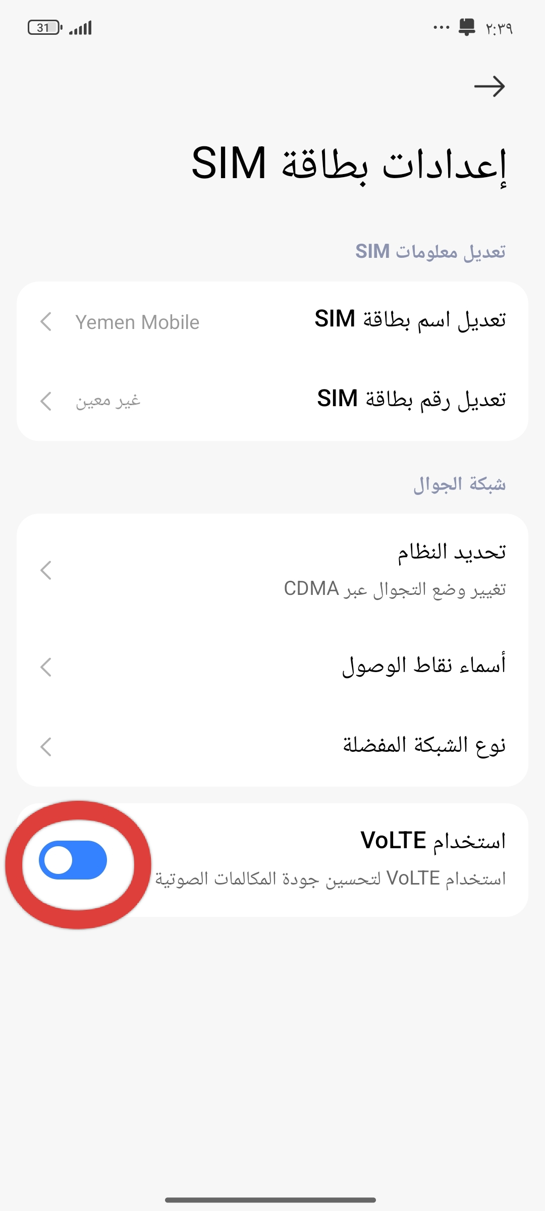 تفعيل VoLTE على الشريحة